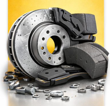 Sistema de frenos (zapatas, bloques, pastillas), fajas de freno, repuestos y accesorios en general